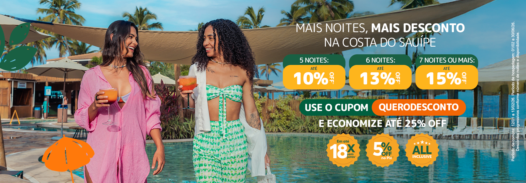 Aproveite a Bahia de todas as alegrias com benefícios exclusivos do site. Garanta a sua hospedagem pelo melhor preço e viva o novo na Costa do Sauípe.