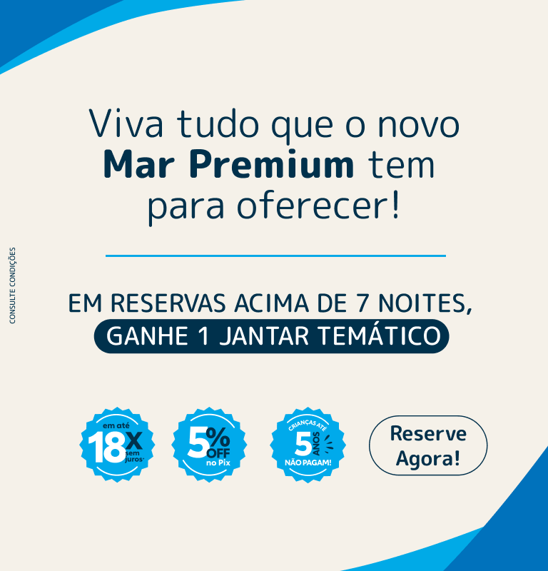 - Jantar cortesia em um dos restaurantes temáticos a sua escolha em reservas de 7 noites ou mais.